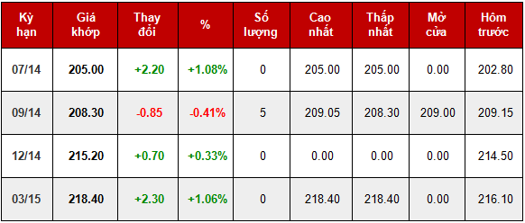 Certs Ice: 2.508.201 b Certs Liffe: 66.410 tấn GCA: 5.255.598b